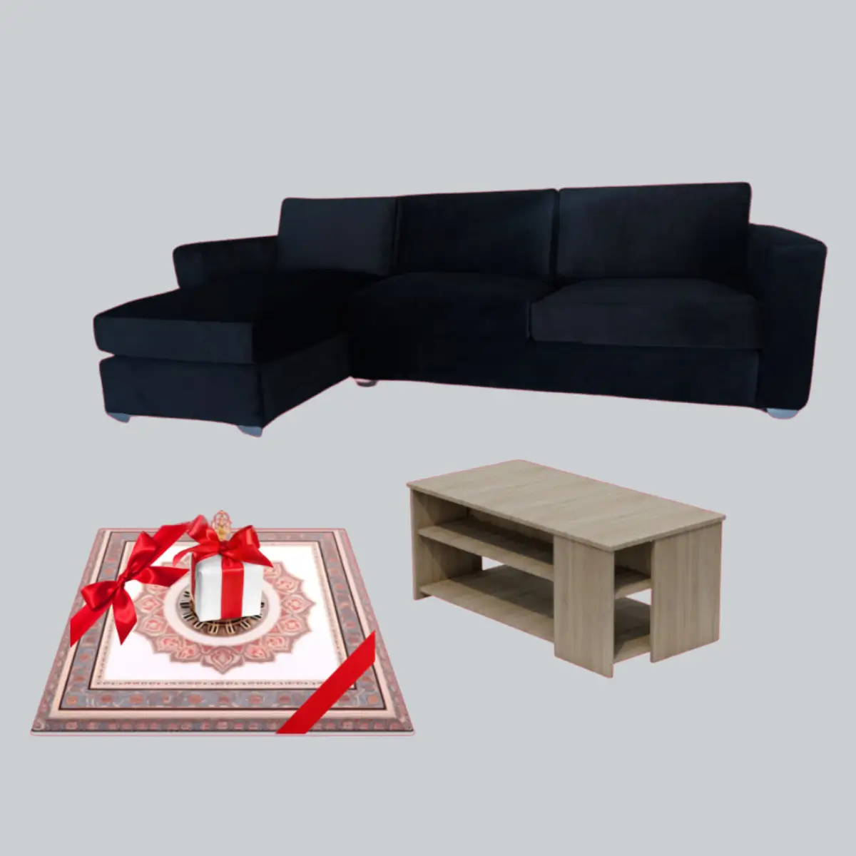 Canape L +Table Basse + Tapis Cadeaux
